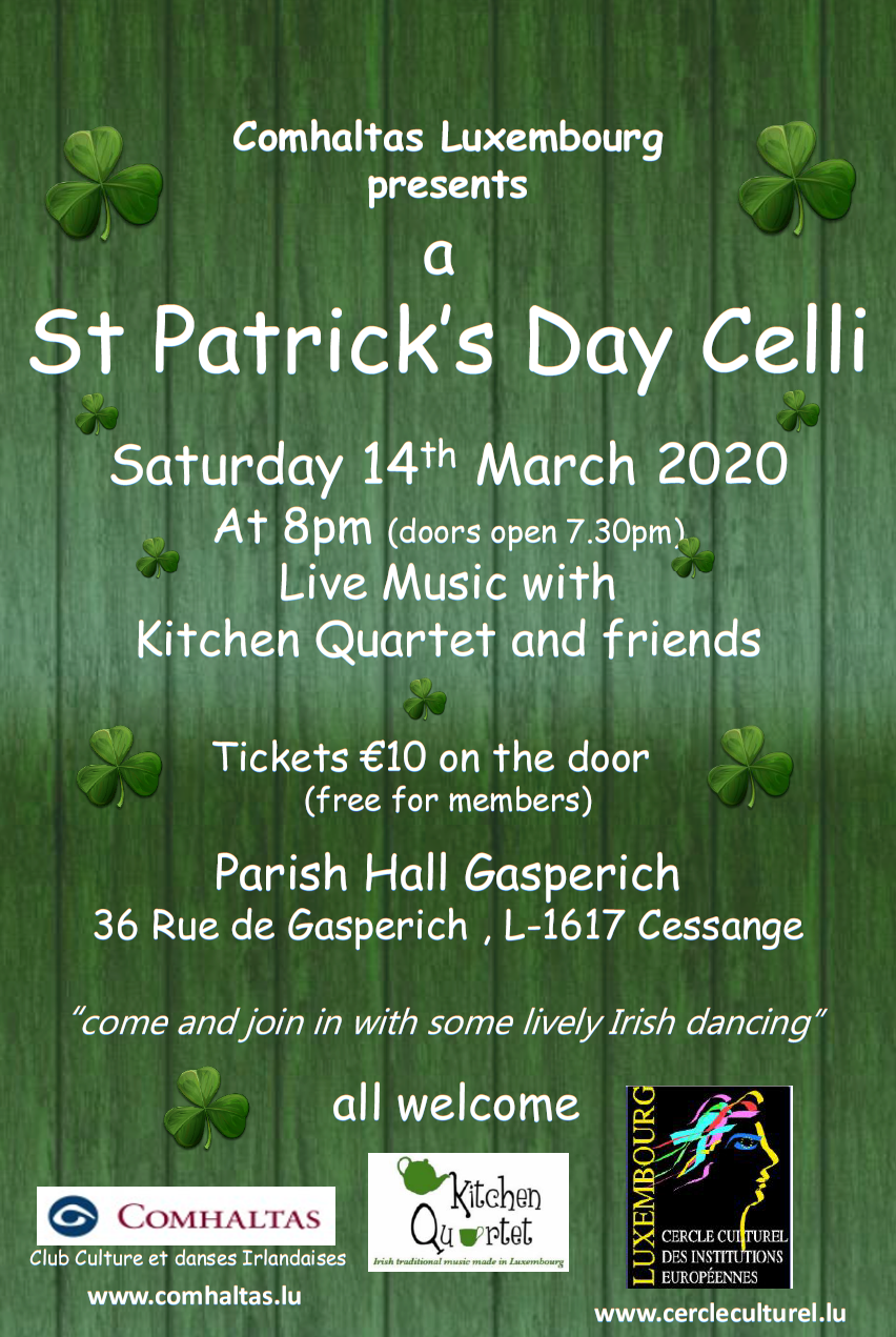 Following the success of previous events in 2017 and 2018, the traditional Irish band Kitchen Quartet will again provide the music, with a dance caller organising those on the dance floor who may not know the various dances. The Luxembourg Pipe Band will also perform.