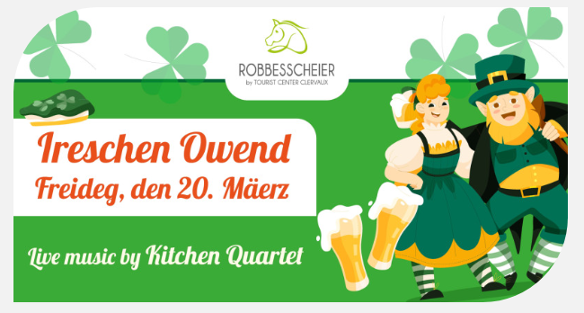 Kitchen Quartet will be performing for the Ireschen Owend at the Robbesscheier Center in Munshausen on Friday 20th March 2026 .