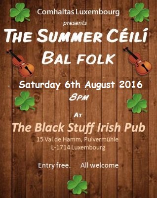 Comhaltas Luxembourg will be hosting a St Patrick’s Day Ceili at 8pm on SATURDAY 18th MARCH 2017, at the Centre Culturel in Beggen, 26A Rue de Rochefort L-2431 Beggen, Luxembourg.